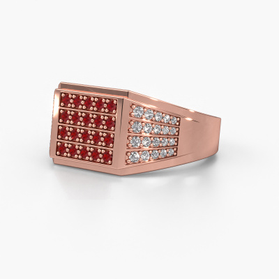 Are you looking for a modern rose gold men's ring that is slightly different? Then our rectangular rose gold ruby set Tim men's ring is the perfect ring for you! This ring, as shown here, is made of rose gold but feel free to customize to your liking. Show them what you are all about with this rose gold ruby Tim men's ring, a ring for ambitious men. The special Tim men's ring, as shown here, can be customized to your liking. Our online tool offers many different options but please feel free to contact us if you want changes made to your Tim men's ring, which are unavailable in our online tool.New jewelry designs are added to our online collection daily. Our team of passionate designers strive to create extraordinary and diverse designs. Have you seen a ring you like? Please feel free to contact us. Based on a good price/ quality ratio, we will make you an offer you can't refuse!By using a combination of the latest modern techniques, combined with ancient crafting, we can make all our rings in our own studio. Each jewel is made to order. This is advantageous because we can offer you a price you won't find anywhere else.To make it easier for you, we offer a 30 day return policy. Check our terms and conditions.