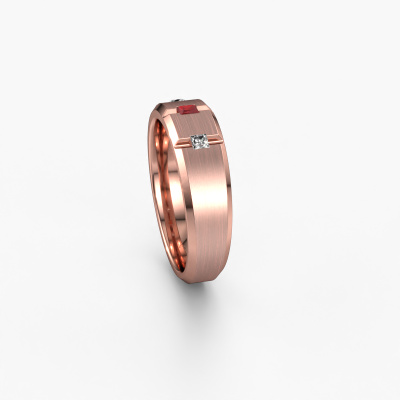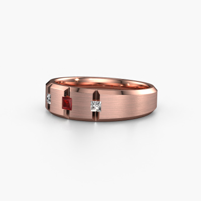 Are you looking for a modern rose gold men's ring that is slightly different? Then our wide rose gold ruby set Justin men's ring is the perfect ring for you! This ring, as shown here, is made of rose gold but feel free to customize to your liking. Show them what you are all about with this rose gold ruby Justin men's ring, a ring for ambitious men. Customize your own edgy Justin men's ring, which will then be created by our goldsmiths with great passion. Do you prefer a different option than is shown here in the rose gold Justin men's ring? Then our online tools offers various options. Feel free to ask us for help if you are unable to succeed. We are happy to answer your questions!