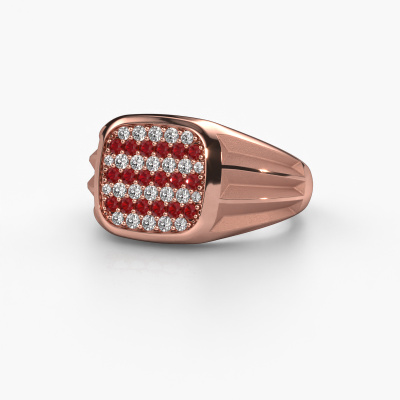 Are you looking for a exclusive rose gold pinky ring that is slightly different? Then our square rose gold ruby set Robbert pinky ring is the perfect ring for you! This ring, as shown here, is made of rose gold but feel free to customize to your liking. Show them what you are all about with this rose gold ruby Robbert pinky ring, a ring for ambitious men. How do you like this exclusive rose gold men's ring? Simply customize this Robbert men's ring, using our online tool. Subsequently, your personal elegant Robbert men's ring will be made by hand by our goldsmiths. Precious metals and gemstones can be customized to your liking. Do you have specific preferences which are unavailable in our online tool? Please feel free to contact us. We will customize your personal exclusive men's ring to your liking.