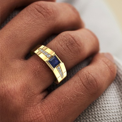 Are you looking for a modern gold pinky ring that is slightly different? Then our square gold sapphire set Simon pinky ring is the perfect ring for you! This ring, as shown here, is made of gold but feel free to customize to your liking. Show them what you are all about with this gold sapphire Simon pinky ring, a ring for ambitious men. How do you like this modern gold men's ring? Simply customize this Simon men's ring, using our online tool. Subsequently, your personal luxury Simon men's ring will be made by hand by our goldsmiths. Precious metals and gemstones can be customized to your liking. Do you have specific preferences which are unavailable in our online tool? Please feel free to contact us. We will customize your personal modern men's ring to your liking.Our talented designers add new designs to our online collection daily. Together they create a diverse collection of the finest jewelry. If you prefer to make a ring according your own design, please feel free to request a quote. We will make you an amazing offer, based on quality and price.By using a combination of the latest modern techniques, combined with ancient crafting, we can make all our rings in our own studio. Each jewel is made to order. This is advantageous because we can offer you a price you won't find anywhere else.To make it easier for you, we offer a 30 day return policy. Check our terms and conditions.