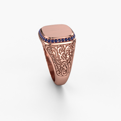 Dress to impress with this heavy Jesse 2 men's ring, because with the right ring you make a strong personal statement. This Jesse 2 special men's ring is shown in 14 Carat rose gold. If this doesn't suit your style, feel free to customize the precious metal to your liking. After all, you want a men's ring that matches your style. A ring that truly suits you. One saying: This is who I am!The best part of this special signet ring is that you can customize it to your own liking. Your style, your choice, your signet ring. On top of that, your vintage rose gold signet ring will be made by hand with eco-friendly materials! Please feel free to easily customize the ring, using our online tool. Of course, you can always contact us. We will gladly help you compiling your vintage signet ring. Is there a design you like, but you would like to customize it with a gemstone we do not offer on our website, then please contact us. We're happy to tell you about the possibilities.