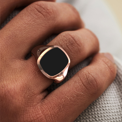 The solid Benjamin 3 signet ring with rectangle antique black enamel stone top, as shown above, is filled with tradition. Customary, the signet ring was passed down from father to son. Start your own tradition with this solid rose gold signet ring. We are also more than happy to engrave your ring with a monogram or family crest. Please check our database for further inquiries and options. You can find the departments of our education center at the bottom of this page. Start a new tradition with the traditional rose gold Benjamin 3 signet ring. Customize your own affordable Benjamin 3 signet ring, which will then be created by our goldsmiths with great passion. Do you prefer a different option than is shown here in the rose gold Benjamin 3 signet ring? Then our online tools offers various options. Feel free to ask us for help if you are unable to succeed. We are happy to answer your questions!Our team of talented, passionate designers add new ring designs to our online collection daily. Our objective in doing so, is to be able to offer you a wide variety of jewels. Please feel free to request a quote if you have specific wishes for your ring. We guarantee to make you an offer you can't refuse.By using our modern techniques, we can design and customize the finest quality jewels with the utmost care for you. Our rings are always priced 30 percent lower than other jewelers. We make rings to order, so we don't have to maintain a large stock. If you have a certain budget, we are more than happy to advice you accordingly.To make it easier for you, we offer a 30 day return policy. Check our terms and conditions.