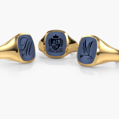 The solid Benjamin 3 signet ring with rectangle antique blue sardonyx stone top, as shown above, is filled with tradition. Customary, the signet ring was passed down from father to son. Start your own tradition with this solid gold signet ring. We are also more than happy to engrave your ring with a monogram or family crest. Please check our database for further inquiries and options. You can find the departments of our education center at the bottom of this page. Start a new tradition with the traditional gold Benjamin 3 signet ring. Customize your own affordable Benjamin 3 signet ring, which will then be created by our goldsmiths with great passion. Do you prefer a different option than is shown here in the gold Benjamin 3 signet ring? Then our online tools offers various options. Feel free to ask us for help if you are unable to succeed. We are happy to answer your questions!Our team of talented, passionate designers add new ring designs to our online collection daily. Our objective in doing so, is to be able to offer you a wide variety of jewels. Please feel free to request a quote if you have specific wishes for your ring. We guarantee to make you an offer you can't refuse.By using our modern techniques, we can design and customize the finest quality jewels with the utmost care for you. Our rings are always priced 30 percent lower than other jewelers. We make rings to order, so we don't have to maintain a large stock. If you have a certain budget, we are more than happy to advice you accordingly.To make it easier for you, we offer a 30 day return policy. Check our terms and conditions.