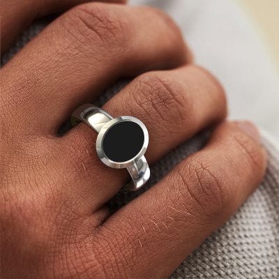The oval Oscar 1 pinky ring with oval shape black enamel stone top, as shown above, is filled with tradition. Customary, the pinky ring was passed down from father to son. Start your own tradition with this oval platinum pinky ring. We are also more than happy to engrave your ring with a monogram or family crest. Please check our database for further inquiries and options. You can find the departments of our education center at the bottom of this page. Start a new tradition with the trendy platinum Oscar 1 pinky ring. The best part of this elegant signet ring is that you can customize it to your own liking. Your style, your choice, your signet ring. On top of that, your trendy platinum signet ring will be made by hand with eco-friendly materials! Please feel free to easily customize the ring, using our online tool. Of course, you can always contact us. We will gladly help you compiling your trendy signet ring. Is there a design you like, but you would like to customize it with a gemstone we do not offer on our website, then please contact us. We're happy to tell you about the possibilities.