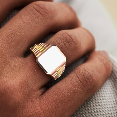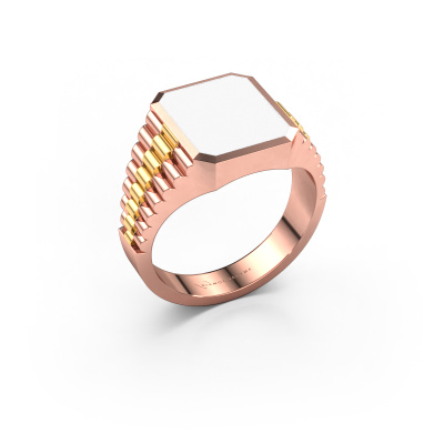 Everyone knows the design of this well-known watch brand. With two colors of rose gold links, this flat 14 Carat rose gold Brent 2 signet ring, is perfectly suited for trendy, successful men. A man who wants to dress to impress with a striking signet ring with 12x10 mm white enamel. Show them what you are made of!Customize your own special Brent 2 signet ring, which will then be created by our goldsmiths with great passion. Do you prefer a different option than is shown here in the rose gold Brent 2 signet ring? Then our online tools offers various options. Feel free to ask us for help if you are unable to succeed. We are happy to answer your questions!