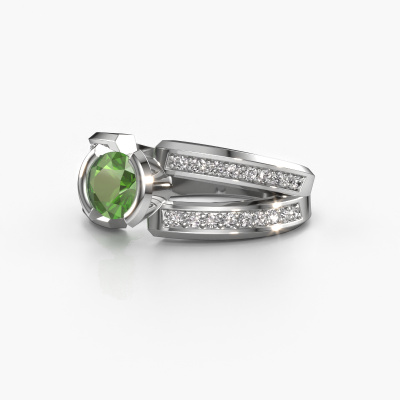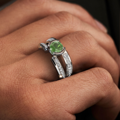 The heavy Rowan men's ring with round tourmaline green stone top, as shown above, is filled with tradition. Customary, the men's ring was passed down from father to son. Start your own tradition with this heavy white gold men's ring. We are also more than happy to engrave your ring with a monogram or family crest. Please check our database for further inquiries and options. You can find the departments of our education center at the bottom of this page. Start a new tradition with the contemporary white gold Rowan men's ring. Our goldsmiths passionately create your customized men's ring to your liking with the utmost care. The white gold men's ring, as shown here, can be customized using our online tool. Feel free to ask our jewel designers for assistance if you want changes made which are unavailable in our online tool. We are happy to answer your questions.Our talented designers add new designs to our online collection daily. Together they create a diverse collection of the finest jewelry. If you prefer to make a ring according your own design, please feel free to request a quote. We will make you an amazing offer, based on quality and price.By using our modern techniques, we can design and customize the finest quality jewels with the utmost care for you. Our rings are always priced 30 percent lower than other jewelers. We make rings to order, so we don't have to maintain a large stock. If you have a certain budget, we are more than happy to advice you accordingly.To make it easier for you, we offer a 30 day return policy. Check our terms and conditions.