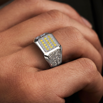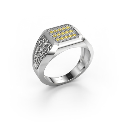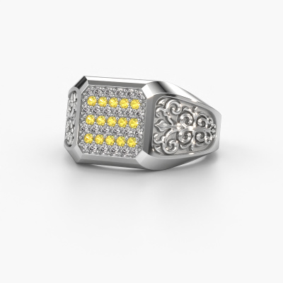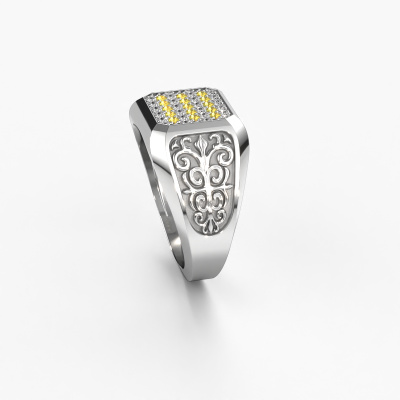 Are you looking for a design platinum men's ring that is slightly different? Then our flat platinum yellow sapphire set Amir men's ring is the perfect ring for you! This ring, as shown here, is made of platinum but feel free to customize to your liking. Show them what you are all about with this platinum yellow sapphire Amir men's ring, a ring for ambitious men. Our goldsmiths passionately create your customized men's ring to your liking with the utmost care. The platinum men's ring, as shown here, can be customized using our online tool. Feel free to ask our jewel designers for assistance if you want changes made which are unavailable in our online tool. We are happy to answer your questions.Our team of talented, passionate designers add new ring designs to our online collection daily. Our objective in doing so, is to be able to offer you a wide variety of jewels. Please feel free to request a quote if you have specific wishes for your ring. We guarantee to make you an offer you can't refuse.Because we design and deliver our own rings, we can offer you a ring at a price you won't find anywhere else. A ring is made to order, which helps prevent excess supplies, so we can make you a great price offer. We understand it feels risky, buying your ring online, but we will gladly assist in the designing process, taking your budget into consideration.To make it easier for you, we offer a 30 day return policy. Check our terms and conditions.