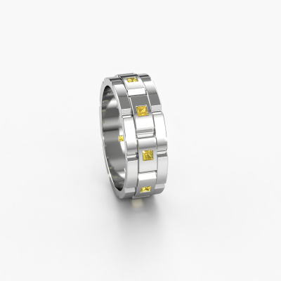 Everyone knows the design of this well-known watch brand. With two colors of platinum links, this straight platinum Ricardo 2 men's ring, is perfectly suited for trendy, successful men. A man who wants to dress to impress with a striking men's ring with 2 mm yellow sapphire. Show them what you are made of!The best part of this best prices men's ring is that you can customize it to your own liking. Your style, your choice, your men's ring. On top of that, your luxury platinum men's ring will be made by hand with eco-friendly materials! Please feel free to easily customize the ring, using our online tool. Of course, you can always contact us. We will gladly help you compiling your luxury men's ring. Is there a design you like, but you would like to customize it with a gemstone we do not offer on our website, then please contact us. We're happy to tell you about the possibilities.Our team of talented, passionate designers add new ring designs to our online collection daily. Our objective in doing so, is to be able to offer you a wide variety of jewels. Please feel free to request a quote if you have specific wishes for your ring. We guarantee to make you an offer you can't refuse.After receiving your order, our goldsmiths will start the creative process of making your Ricardo 2 ring. We don't keep stock. This is advantageous because these costs will not be passed on to you. Therefore, we can offer jewelry at exceptionally low prices.To make it easier for you, we offer a 30 day return policy. Check our terms and conditions.
