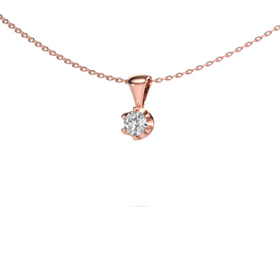 This solitaire necklace Fran is both a classic and a trendy piece of jewelry. A solitaire pendant has an open prong setting, therefore, light reflects beautifully on the gemstone. Because the diamond is set high, this classic necklace is a stunning eye-catcher. We will create your charming necklace by hand with the utmost care in our DiamondsByMe studio. For maximum shine, our goldsmith sets the diamond in the rose gold necklace with great care. This charming necklace is set with round 0.25 crt diamond. A customized classic charming necklace is the perfect gift! New exquisite designs are added daily by our team of passionate goldsmiths. And each design can be customized. Simply customize the precious metals and the color of gemstones which will be used, for example. This makes your design of the classic Fran necklace truly unique!