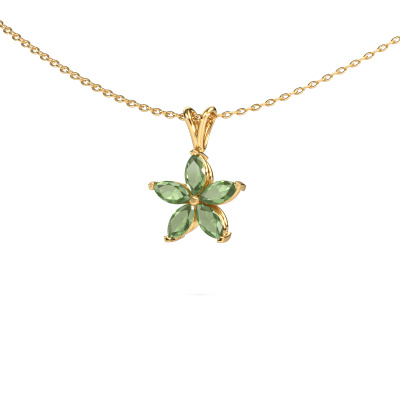 This classic pendant Sylvana is set with a stunning marquise tourmaline green. In the past, gemstones were believed to have specific characteristics. Choose your gemstones based on these characteristics, or because they suit you, or because you simply like the color. Whether you believe birthstones have certain characteristics or not, this cluster pendant set with a carefully selected tourmaline green is truly eye-catching. A beautiful pendant to finish your outfit. You can also have the pendant set with your own or your children's birthstones, giving your pendant an extra meaning. Here the gold pendant is set with 5x2.5 mm tourmaline green. What could possibly be more beautiful than a personally designed classic pendant, handmade by yours truly? Please, feel free to customize each model by choosing different precious metals and gemstones. This makes your pendant truly unique. This pendant can be customized to your liking. It goes without saying that you can also ask us for help. We are more than willing to assist in designing your Sylvana classic pendant. If you like but still have specific wishes concerning customizing your design, such as adding a gemstone which isn't mentioned in the list, feel free to contact us. We will gladly inform you on different options.