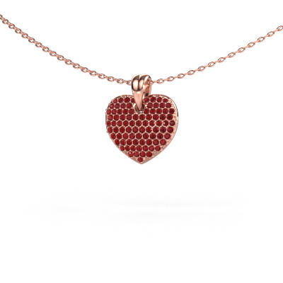 Let your heart speak with this gorgeous heart Heart 5 pendant. Made of rose gold and adorned with the most beautiful ruby. Keep your loved one close to your heart, and have your heart shaped pendant crafted by the DiamondsByMe goldsmiths. This heart shaped pendant is an exquisite gift for a loved one, or yourself! This pendant is made by hand by our goldsmith in our own DiamondsByMe studio. Due to a unique combination of the latest modern techniques and ancient craftsmanship we are able to create your heart shaped pendant to perfection. And that is what excites our goldsmiths, because only the finest piece of jewelry will do! We also carefully select our ruby and each ruby of your heart shaped pendant is set with great care to create maximum shine. A uniquely handmade heart shaped pendant with a stunning ruby is what you end up with. A customized fantasy heart pendant is the perfect gift! New exquisite designs are added daily by our team of passionate goldsmiths. And each design can be customized. Simply customize the precious metals and the color of gemstones which will be used, for example. This makes your design of the fantasy Heart 5 pendant truly unique!