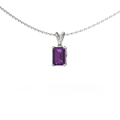 This chic pendant Sam EME is set with a stunning emerald cut amethyst. In the past, gemstones were believed to have specific characteristics. Choose your gemstones based on these characteristics, or because they suit you, or because you simply like the color. Whether you believe birthstones have certain characteristics or not, this fine pendant set with a carefully selected amethyst is truly eye-catching. A beautiful pendant to finish your outfit. You can also have the pendant set with your own or your children's birthstones, giving your pendant an extra meaning. Here the white gold pendant is set with 7x5 mm amethyst. What could possibly be more beautiful than a personally designed chic pendant, handmade by yours truly? Please, feel free to customize each model by choosing different precious metals and gemstones. This makes your pendant truly unique. This pendant can be customized to your liking. It goes without saying that you can also ask us for help. We are more than willing to assist in designing your Sam EME chic pendant. If you like but still have specific wishes concerning customizing your design, such as adding a gemstone which isn't mentioned in the list, feel free to contact us. We will gladly inform you on different options.