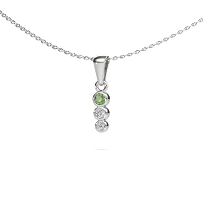 What a beautiful, contemporary pendant! A trendy pendant to finish your outfit. Buy it from DiamondsByMe. Our goldsmiths use the finest precious metals and gemstones to create our most extraordinary pieces of jewelry. Take this modern white gold tourmaline green set Felica pendant, for example. It was selected with great care, because your pendant should only be adorned with the finest tourmaline green. Our goldsmith will make your pendant by hand and will set the tourmaline green with great precision. Then it will be finished and polished to perfection, leaving you with a stunning pendant as a result!A customized modern trendy pendant is the perfect gift! New exquisite designs are added daily by our team of passionate goldsmiths. And each design can be customized. Simply customize the precious metals and the color of gemstones which will be used, for example. This makes your design of the modern Felica pendant truly unique!