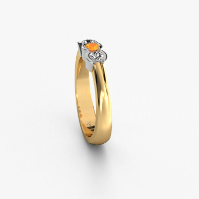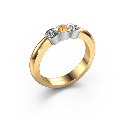 This extraordinary ring is called Lotte 3. This type of ring is known as a memoire ring, because its gemstones are set in a continuous line. This makes it easy to combine with other rings. The band of this 14 Carat gold ring is set in a combination of citrin and diamond 3 mm. You can easily choose the combination you prefer online. As you can see, a single citrin is set in this single alliance gold ring. The memoire ring represents collaboration. And that is precisely what these gemstones do, collaborate. Together they add a beautiful effect to the band of a modern ring! Such a meaningful ring, wouldn't you agree? All of our hand selected citrin are positioned by hand by our expert goldsmith. It's a precise task, which can only be completed successfully through the combination of pure craftsmanship and usage of the latest techniques which give it an optimal effect. To create a perfect reflection of light, all the gemstones have to be perfectly aligned in the same way. During manufacturing, the expert goldsmith will therefore monitor the reflection of light constantly to check whether the citrin are aligned properly. This requires a skilled hand and a lot of patience but then the end product will be a true piece of art. And that is our mission!By using a combination of the latest modern techniques, combined with ancient crafting, we can make all our rings in our own studio. Each jewel is made to order. This is advantageous because we can offer you a price you won't find anywhere else.Our team of talented, passionate designers add new ring designs to our online collection daily. Our objective in doing so, is to be able to offer you a wide variety of jewels. Please feel free to request a quote if you have specific wishes for your ring. We guarantee to make you an offer you can't refuse.To make it easier for you, we offer a 30 day return policy. Check our terms and conditions.