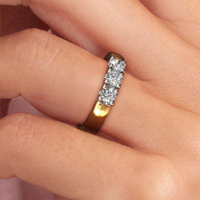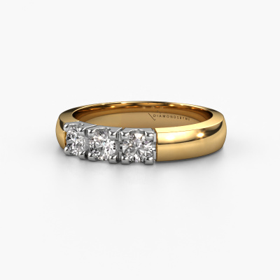 This extraordinary ring is called Rianne 3. This type of ring is known as a memoire ring, because its gemstones are set in a continuous line. This makes it easy to combine with other rings. The band of this 14 Carat gold ring is set in a combination of zirconia and diamond 3.4 mm. You can easily choose the combination you prefer online. As you can see, a single zirconia is set in this single alliance gold ring. The memoire ring represents collaboration. And that is precisely what these gemstones do, collaborate. Together they add a beautiful effect to the band of a classic ring! Such a meaningful ring, wouldn't you agree? All of our hand selected cz-stones are positioned by hand by our expert goldsmith. It's a precise task, which can only be completed successfully through the combination of pure craftsmanship and usage of the latest techniques which give it an optimal effect. To create a perfect reflection of light, all the gemstones have to be perfectly aligned in the same way. During manufacturing, the expert goldsmith will therefore monitor the reflection of light constantly to check whether the cz-stones are aligned properly. This requires a skilled hand and a lot of patience but then the end product will be a true piece of art. And that is our mission!After receiving your order, our goldsmiths will passionately start the creative process of making your ring in our own studio. Because we don't have a big stockpile, these costs will not be passed on to you. Our pricing is proof of that! We offer top quality jewels at lowest price, guaranteed.Our team of talented, passionate designers add new ring designs to our online collection daily. Our objective in doing so, is to be able to offer you a wide variety of jewels. Please feel free to request a quote if you have specific wishes for your ring. We guarantee to make you an offer you can't refuse.To make it easier for you, we offer a 30 day return policy. Check our terms and conditions.