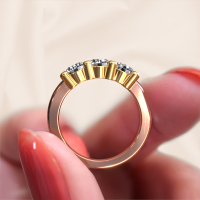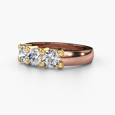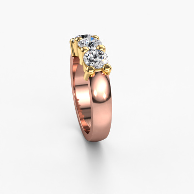 This extraordinary ring is called Yasmin 3. This type of ring is known as a memoire ring, because its gemstones are set in a continuous line. This makes it easy to combine with other rings. The band of this 14 Carat rose gold ring is set in a combination of diamond and lab-grown diamond 1.50 crt. You can easily choose the combination you prefer online. As you can see, a single diamond is set in this single alliance rose gold ring. The memoire ring represents collaboration. And that is precisely what these gemstones do, collaborate. Together they add a beautiful effect to the band of a classic ring! Such a meaningful ring, wouldn't you agree? All of our hand selected diamonds are positioned by hand by our expert goldsmith. It's a precise task, which can only be completed successfully through the combination of pure craftsmanship and usage of the latest techniques which give it an optimal effect. To create a perfect reflection of light, all the gemstones have to be perfectly aligned in the same way. During manufacturing, the expert goldsmith will therefore monitor the reflection of light constantly to check whether the diamonds are aligned properly. This requires a skilled hand and a lot of patience but then the end product will be a true piece of art. And that is our mission!By using a combination of the latest modern techniques, combined with ancient crafting, we can make all our rings in our own studio. Each jewel is made to order. This is advantageous because we can offer you a price you won't find anywhere else.Our talented designers add new designs to our online collection daily. Together they create a diverse collection of the finest jewelry. If you prefer to make a ring according your own design, please feel free to request a quote. We will make you an amazing offer, based on quality and price.To make it easier for you, we offer a 30 day return policy. Check our terms and conditions.