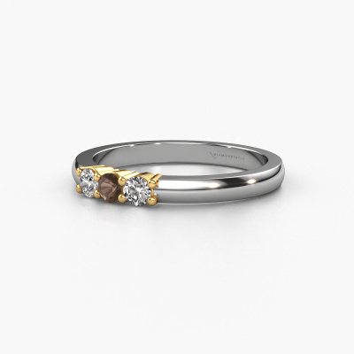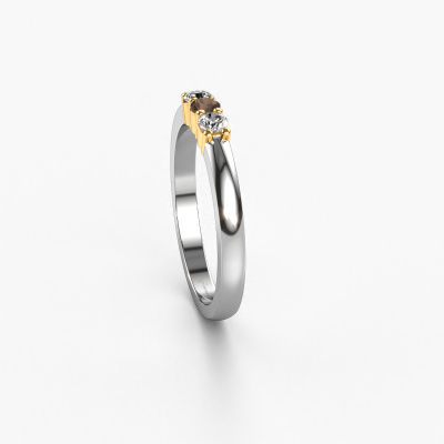 This extraordinary ring is called Yasmin 3. This type of ring is known as a memoire ring, because its gemstones are set in a continuous line. This makes it easy to combine with other rings. The band of this 14 Carat white gold ring is set in a combination of smokey quartz and lab-grown diamond 3 mm. You can easily choose the combination you prefer online. As you can see, a single smokey quartz is set in this single alliance white gold ring. The memoire ring represents collaboration. And that is precisely what these gemstones do, collaborate. Together they add a beautiful effect to the band of a classic ring! Such a meaningful ring, wouldn't you agree? All of our hand selected smokey quartz are positioned by hand by our expert goldsmith. It's a precise task, which can only be completed successfully through the combination of pure craftsmanship and usage of the latest techniques which give it an optimal effect. To create a perfect reflection of light, all the gemstones have to be perfectly aligned in the same way. During manufacturing, the expert goldsmith will therefore monitor the reflection of light constantly to check whether the smokey quartz are aligned properly. This requires a skilled hand and a lot of patience but then the end product will be a true piece of art. And that is our mission!By using a combination of the latest modern techniques, combined with ancient crafting, we can make all our rings in our own studio. Each jewel is made to order. This is advantageous because we can offer you a price you won't find anywhere else.Our talented designers add new designs to our online collection daily. Together they create a diverse collection of the finest jewelry. If you prefer to make a ring according your own design, please feel free to request a quote. We will make you an amazing offer, based on quality and price.To make it easier for you, we offer a 30 day return policy. Check our terms and conditions.