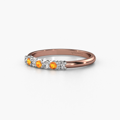 This extraordinary ring is called Michelle 7. This type of ring is known as a memoire ring, because its gemstones are set in a continuous line. This makes it easy to combine with other rings. The band of this 14 Carat rose gold ring is set in a combination of citrin and diamond 2 mm. You can easily choose the combination you prefer online. As you can see, a single citrin is set in this single alliance rose gold ring. The memoire ring represents collaboration. And that is precisely what these gemstones do, collaborate. Together they add a beautiful effect to the band of a classic ring! Such a meaningful ring, wouldn't you agree? All of our hand selected citrin are positioned by hand by our expert goldsmith. It's a precise task, which can only be completed successfully through the combination of pure craftsmanship and usage of the latest techniques which give it an optimal effect. To create a perfect reflection of light, all the gemstones have to be perfectly aligned in the same way. During manufacturing, the expert goldsmith will therefore monitor the reflection of light constantly to check whether the citrin are aligned properly. This requires a skilled hand and a lot of patience but then the end product will be a true piece of art. And that is our mission!After receiving your order, our goldsmiths will passionately start the creative process of making your ring in our own studio. Because we don't have a big stockpile, these costs will not be passed on to you. Our pricing is proof of that! We offer top quality jewels at lowest price, guaranteed.