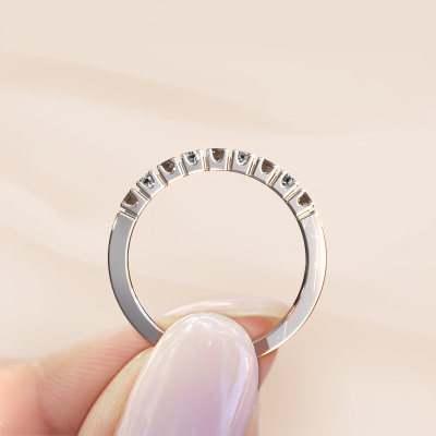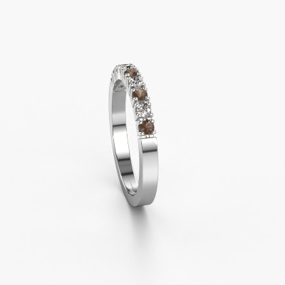 This extraordinary ring is called Dana 9. This type of ring is known as a memoire ring, because its gemstones are set in a continuous line. This makes it easy to combine with other rings. The band of this 14 Carat white gold ring is set in a combination of smokey quartz and diamond 2 mm. You can easily choose the combination you prefer online. As you can see, a single smokey quartz is set in this single alliance white gold ring. The memoire ring represents collaboration. And that is precisely what these gemstones do, collaborate. Together they add a beautiful effect to the band of a modern ring! Such a meaningful ring, wouldn't you agree? All of our hand selected smokey quartz are positioned by hand by our expert goldsmith. It's a precise task, which can only be completed successfully through the combination of pure craftsmanship and usage of the latest techniques which give it an optimal effect. To create a perfect reflection of light, all the gemstones have to be perfectly aligned in the same way. During manufacturing, the expert goldsmith will therefore monitor the reflection of light constantly to check whether the smokey quartz are aligned properly. This requires a skilled hand and a lot of patience but then the end product will be a true piece of art. And that is our mission!After receiving your order, our goldsmiths will passionately start the creative process of making your ring in our own studio. Because we don't have a big stockpile, these costs will not be passed on to you. Our pricing is proof of that! We offer top quality jewels at lowest price, guaranteed.Our talented designers add new designs to our online collection daily. Together they create a diverse collection of the finest jewelry. If you prefer to make a ring according your own design, please feel free to request a quote. We will make you an amazing offer, based on quality and price.To make it easier for you, we offer a 30 day return policy. Check our terms and conditions.