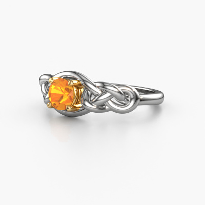 This symbolic white gold Zoe ring is set with citrin. For some, a ring is nothing more than a beautiful fashion item but they can become a meaningful keepsake. A ring such as this can be worn daily and it matches numerous different styles. Designing your own unique ring, makes it even more special. You are reminded of its uniqueness every time you look at it. Perhaps it reminds you of someone special. It might bring back memories. Unforgettable moments, represented in one ring. The beauty of it all is that the used precious metals and gemstones will last a lifetime. A lifetime of memories deserves nothing less! The best part of this knot ring is that you can customize it to your own liking. Your style, your choice, your ring. On top of that, your Celtic white gold ring will be made by hand with eco-friendly materials! Please feel free to easily customize the ring, using our online tool.By using our modern techniques, we can design and customize the finest quality jewels with the utmost care for you. Our rings are always priced 30 percent lower than other jewelers. We make rings to order, so we don't have to maintain a large stock. If you have a certain budget, we are more than happy to advice you accordingly.To make it easier for you, we offer a 30 day return policy. Check our terms and conditions.