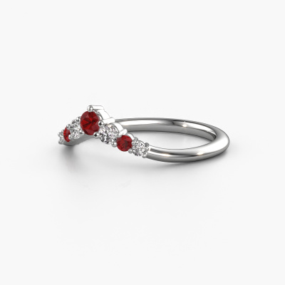 This Imani A stacking ring in 14 Carat white gold is set with ruby. This white gold stacked Imani A ring is the perfect addition to your ring collection! As the name suggests, it is a ring which can be combined on one finger with another ring. It gives you the opportunity to create your own style. A stacked ring usually represents a certain memory of someone special or a memorable moment. It is common to combine a stacked ring, representing an anniversary, with a wedding ring. But this graceful ring, combined with your other rings, also makes a classy fashion item. As soon as you finished designing your Imani A stacking ring with our online tool, our goldsmiths will start their creative process of making your ring. This will be done with passion and care, according ancient crafting. On top of that, our jewels are made of eco-friendly materials. Simply customize online with our online tool, if you want any changes made. If you want specific changes made to your Imani A stacking ring, that are unavailable in our online tool, please feel free to contact our expert designers.Because we design and deliver our own rings, we can offer you a ring at a price you won't find anywhere else. A ring is made to order, which helps prevent excess supplies, so we can make you a great price offer. We understand it feels risky, buying your ring online, but we will gladly assist in the designing process, taking your budget into consideration.To make it easier for you, we offer a 30 day return policy. Check our terms and conditions.