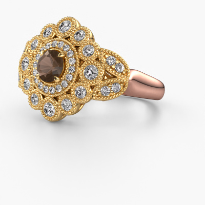 Do you have a vintage fetish? Then this rose gold Elia ring suits you perfectly. It's a contemporary design, based on vintage designs. A slightly romantic, extraordinary design! Even more when you customize to your liking. This cluster ring is set with exquisite smokey quartz. As you can see, you can simply choose a gemstone that matches your style. Each gemstone is carefully selected by our merchants whom are spread throughout the world. Nothing but the best gems for our expert goldsmith! After all, it is his crowning glory!Our goldsmiths passionately create your customized ring to your liking with the utmost care. The rose gold ring, as shown here, can be customized using our online tool. Feel free to ask our jewel designers for assistance if you want changes made which are unavailable in our online tool. We are happy to answer your questions.Because we design and deliver our own rings, we can offer you a ring at a price you won't find anywhere else. A ring is made to order, which helps prevent excess supplies, so we can make you a great price offer. We understand it feels risky, buying your ring online, but we will gladly assist in the designing process, taking your budget into consideration.To make it easier for you, we offer a 30 day return policy. Check our terms and conditions.