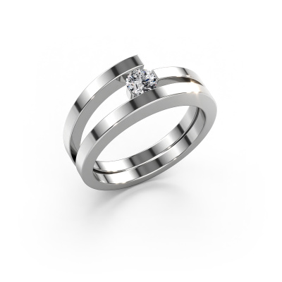 This ring called Sandy is made of 14 Carat white gold and is set with diamond. Are you in the market for a unique white gold ring with a modern twist? Then this ring might suit you. Simply customize to your or her liking. It suits the contemporary modern woman. This contemporary ring is set with beautiful diamond. This has been carefully selected. Because your ring must be adorned with nothing but the most stunning gemstone. Our expert goldsmith will create your ring in our own studio, where the diamond will be set with great care. The ring will then be polished to perfection to create a stunning ring. Are you on a budget? Please feel free to contact us, so we can go discuss your options. We offer our rings at guaranteed best price, because we make them to order. You won't find such a price anywhere else!Our talented designers add new designs to our online collection daily. Together they create a diverse collection of the finest jewelry. If you prefer to make a ring according your own design, please feel free to request a quote. We will make you an amazing offer, based on quality and price.To make it easier for you, we offer a 30 day return policy. Check our terms and conditions.