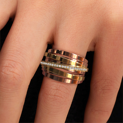 Because of its detailed finish, this wide ring with zirconia has a stylish appearance. A shanks ring that fits the contemporary woman like a glove. This rose gold ring, our Swinda, is a true eye-catcher indeed! As soon as we know what you desire, we will create your ring in our own crafting studio. We work according an innovative process. We use a combination of the latest techniques and ancient traditional craftsmanship, so we are able to create a perfectly designed ring. Our expert goldsmiths strive for perfection so they won't stop until a perfect ring, a true work of art, is created especially for you!A customized unique ring is the perfect gift! New exquisite designs are added daily by our team of passionate goldsmiths. And each design can be customized. Simply customize the precious metals and the color of gemstones which will be used, for example. This makes your design of the unique Swinda ring truly unique!Because we design and deliver our own rings, we can offer you a ring at a price you won't find anywhere else. A ring is made to order, which helps prevent excess supplies, so we can make you a great price offer. We understand it feels risky, buying your ring online, but we will gladly assist in the designing process, taking your budget into consideration.To make it easier for you, we offer a 30 day return policy. Check our terms and conditions.