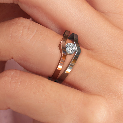 This ring called Elize is made of 14 Carat rose gold and is set with diamond. Are you in the market for a unique rose gold ring with a modern twist? Then this ring might suit you. Simply customize to your or her liking. It suits the contemporary modern woman. This edgy ring is set with beautiful diamond. This has been carefully selected. Because your ring must be adorned with nothing but the most stunning gemstone. Our expert goldsmith will create your ring in our own studio, where the diamond will be set with great care. The ring will then be polished to perfection to create a stunning ring. Are you on a budget? Please feel free to contact us, so we can go discuss your options. We offer our rings at guaranteed best price, because we make them to order. You won't find such a price anywhere else!New jewelry designs are added to our online collection daily. Our team of passionate designers strive to create extraordinary and diverse designs. Have you seen a ring you like? Please feel free to contact us. Based on a good price/ quality ratio, we will make you an offer you can't refuse!To make it easier for you, we offer a 30 day return policy. Check our terms and conditions.