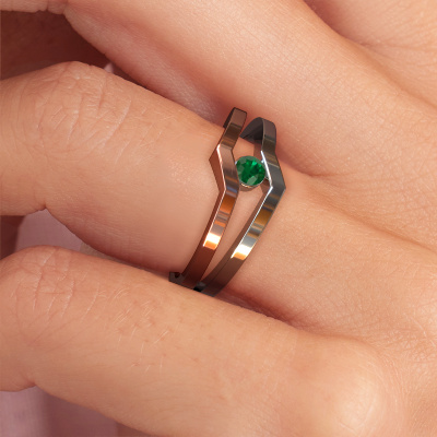 This ring called Elize is made of 14 Carat rose gold and is set with emerald. Are you in the market for a unique rose gold ring with a modern twist? Then this ring might suit you. Simply customize to your or her liking. It suits the contemporary modern woman. This edgy ring is set with beautiful emerald. This has been carefully selected. Because your ring must be adorned with nothing but the most stunning gemstone. Our expert goldsmith will create your ring in our own studio, where the emerald will be set with great care. The ring will then be polished to perfection to create a stunning ring. Are you on a budget? Please feel free to contact us, so we can go discuss your options. We offer our rings at guaranteed best price, because we make them to order. You won't find such a price anywhere else!New jewelry designs are added to our online collection daily. Our team of passionate designers strive to create extraordinary and diverse designs. Have you seen a ring you like? Please feel free to contact us. Based on a good price/ quality ratio, we will make you an offer you can't refuse!To make it easier for you, we offer a 30 day return policy. Check our terms and conditions.