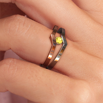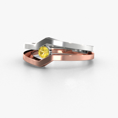 This ring called Elize is made of 14 Carat rose gold and is set with yellow sapphire. Are you in the market for a unique rose gold ring with a modern twist? Then this ring might suit you. Simply customize to your or her liking. It suits the contemporary modern woman. This edgy ring is set with beautiful yellow sapphire. This has been carefully selected. Because your ring must be adorned with nothing but the most stunning gemstone. Our expert goldsmith will create your ring in our own studio, where the yellow sapphire will be set with great care. The ring will then be polished to perfection to create a stunning ring. Are you on a budget? Please feel free to contact us, so we can go discuss your options. We offer our rings at guaranteed best price, because we make them to order. You won't find such a price anywhere else!New jewelry designs are added to our online collection daily. Our team of passionate designers strive to create extraordinary and diverse designs. Have you seen a ring you like? Please feel free to contact us. Based on a good price/ quality ratio, we will make you an offer you can't refuse!To make it easier for you, we offer a 30 day return policy. Check our terms and conditions.