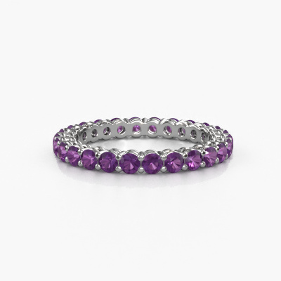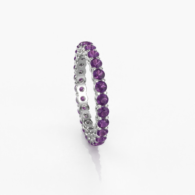 This is our Michelle full 2.4 ring. This specific type is called an eternity ring and it is set with a continuous line of identically cut gemstones. The ring is made in platinum and is set with small amethysten, 2.4 mm. This platinum Eternity ring is a perfectly beautiful and meaningful way to give your proposal that special touch. The magnificent evenly shaped amethysten are pave set around the ring. The identical amethysten are carefully selected to give the ring a maximum effect. Do keep in mind we use natural resources so small differences between stones are common. The special effect is enhanced due to precise positioning of the amethysten. This requires the utmost precision and a skillful hand but for our skilled artisans this is what excites them. The result is a stackable ring with a row of amethysten which seem to have no beginning nor end. The perfect symbol of your love for her! Isn't she a beauty?After receiving your order, our goldsmiths will start the creative process of making your Michelle full 2.4 ring. We don't keep stock. This is advantageous because these costs will not be passed on to you. Therefore, we can offer jewelry at exceptionally low prices.
