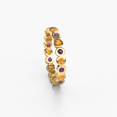 This is our Edwina 1 ring. This specific type is called an eternity ring and it is set with a continuous line of identically cut gemstones. The ring is made in 14 Carat gold and is set with small citrin, 2 mm. This gold Eternity ring is a perfectly beautiful and meaningful way to give your proposal that special touch. The magnificent evenly shaped citrin are pave set around the ring. The identical citrin are carefully selected to give the ring a maximum effect. Do keep in mind we use natural resources so small differences between stones are common. The special effect is enhanced due to precise positioning of the citrin. This requires the utmost precision and a skillful hand but for our skilled artisans this is what excites them. The result is a stackable ring with a row of citrin which seem to have no beginning nor end. The perfect symbol of your love for her! Isn't she a beauty?By using our modern techniques, we can design and customize the finest quality jewels with the utmost care for you. Our rings are always priced 30 percent lower than other jewelers. We make rings to order, so we don't have to maintain a large stock. If you have a certain budget, we are more than happy to advice you accordingly.New jewelry designs are added to our online collection daily. Our team of passionate designers strive to create extraordinary and diverse designs. Have you seen a ring you like? Please feel free to contact us. Based on a good price/ quality ratio, we will make you an offer you can't refuse!To make it easier for you, we offer a 30 day return policy. Check our terms and conditions.