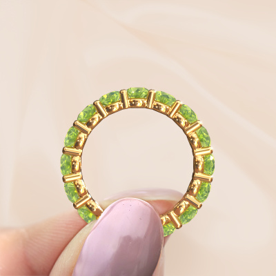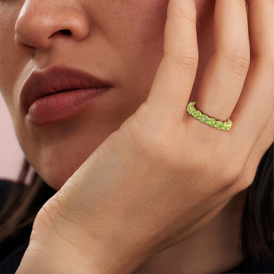 This Heddy rnd 4.0 stackable ring in 14 Carat gold is set with peridot. This gold stacked Heddy rnd 4.0 ring is the perfect addition to your ring collection! As the name suggests, it is a ring which can be combined on one finger with another ring. It gives you the opportunity to create your own style. A stacked ring usually represents a certain memory of someone special or a memorable moment. It is common to combine a stacked ring, representing an anniversary, with a wedding ring. But this eternity ring, combined with your other rings, also makes a classy fashion item. How do you like this exclusive gold stackable ring? Simply customize this Heddy rnd 4.0 stackable ring, using our online tool. Subsequently, your personal eternity Heddy rnd 4.0 stackable ring will be made by hand by our goldsmiths. Precious metals and gemstones can be customized to your liking. Do you have specific preferences which are unavailable in our online tool? Please feel free to contact us. We will customize your personal exclusive stackable ring to your liking.Are you on a budget? Please feel free to contact us, so we can go discuss your options. We offer our rings at guaranteed best price, because we make them to order. You won't find such a price anywhere else!To make it easier for you, we offer a 30 day return policy. Check our terms and conditions.