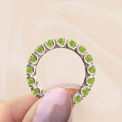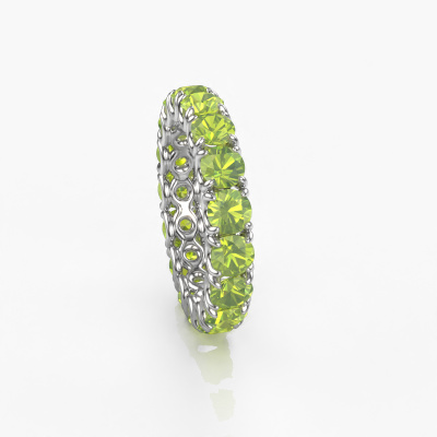 This Estee 4.0 ring in 14 Carat white gold is set with peridot. This white gold stacked Estee 4.0 ring is the perfect addition to your ring collection! As the name suggests, it is a ring which can be combined on one finger with another ring. It gives you the opportunity to create your own style. A stacked ring usually represents a certain memory of someone special or a memorable moment. It is common to combine a stacked ring, representing an anniversary, with a wedding ring. But this eternity ring, combined with your other rings, also makes a classy fashion item. As soon as you finished designing your Estee 4.0 ring with our online tool, our goldsmiths will start their creative process of making your ring. This will be done with passion and care, according ancient crafting. On top of that, our jewels are made of eco-friendly materials. Simply customize online with our online tool, if you want any changes made. If you want specific changes made to your Estee 4.0 ring, that are unavailable in our online tool, please feel free to contact our expert designers.By using our modern techniques, we can design and customize the finest quality jewels with the utmost care for you. Our rings are always priced 30 percent lower than other jewelers. We make rings to order, so we don't have to maintain a large stock. If you have a certain budget, we are more than happy to advice you accordingly.To make it easier for you, we offer a 30 day return policy. Check our terms and conditions.