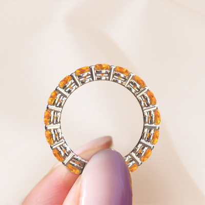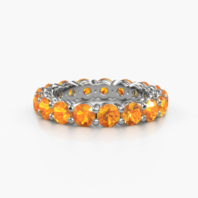 This is our Michelle full 3.7 ring. This specific type is called an eternity ring and it is set with a continuous line of identically cut gemstones. The ring is made in platinum and is set with small citrin, 3.7 mm. The amazing citrin are identical in size and are set in the ring band. Our citrin are selected with great care so they are identical, which gives the best result. In order to get the best result, our artisans position all citrin by hand with the utmost care. Our Goldsmiths have one ambition, which is creating the perfect ring. That is why we love what we do. In the end you get a stunning modern platinum stackable ring with a row of citrin which seem to have no beginning nor end. The perfect symbol of your undying love for her! How special is that!Because we design and deliver our own rings, we can offer you a ring at a price you won't find anywhere else. A ring is made to order, which helps prevent excess supplies, so we can make you a great price offer. We understand it feels risky, buying your ring online, but we will gladly assist in the designing process, taking your budget into consideration.Our team of talented, passionate designers add new ring designs to our online collection daily. Our objective in doing so, is to be able to offer you a wide variety of jewels. Please feel free to request a quote if you have specific wishes for your ring. We guarantee to make you an offer you can't refuse.To make it easier for you, we offer a 30 day return policy. Check our terms and conditions.