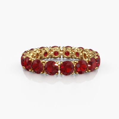 This Vivienne 4.0 stackable ring in 14 Carat gold is set with ruby. This gold stacked Vivienne 4.0 ring is the perfect addition to your ring collection! As the name suggests, it is a ring which can be combined on one finger with another ring. It gives you the opportunity to create your own style. A stacked ring usually represents a certain memory of someone special or a memorable moment. It is common to combine a stacked ring, representing an anniversary, with a wedding ring. But this eternity ring, combined with your other rings, also makes a classy fashion item. A customized modern stackable ring is the perfect gift! New exquisite designs are added daily by our team of passionate goldsmiths. And each design can be customized. Simply customize the precious metals and the color of gemstones which will be used, for example. This makes your design of the modern Vivienne 4.0 stackable ring truly unique!Because we design and deliver our own rings, we can offer you a ring at a price you won't find anywhere else. A ring is made to order, which helps prevent excess supplies, so we can make you a great price offer. We understand it feels risky, buying your ring online, but we will gladly assist in the designing process, taking your budget into consideration.To make it easier for you, we offer a 30 day return policy. Check our terms and conditions.