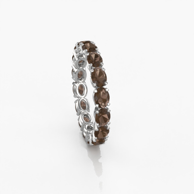 This is our Vivienne OVL 4x3 ring. This specific type is called an eternity ring and it is set with a continuous line of identically cut gemstones. The ring is made in 14 Carat white gold and is set with small smokey quartz, 4x3 mm. This white gold Eternity ring is a perfectly beautiful and meaningful way to give your proposal that special touch. The magnificent evenly shaped smokey quartz are pave set around the ring. The identical smokey quartz are carefully selected to give the ring a maximum effect. Do keep in mind we use natural resources so small differences between stones are common. The special effect is enhanced due to precise positioning of the smokey quartz. This requires the utmost precision and a skillful hand but for our skilled artisans this is what excites them. The result is a ring with a row of smokey quartz which seem to have no beginning nor end. The perfect symbol of your love for her! Isn't she a beauty?Because we design and deliver our own rings, we can offer you a ring at a price you won't find anywhere else. A ring is made to order, which helps prevent excess supplies, so we can make you a great price offer. We understand it feels risky, buying your ring online, but we will gladly assist in the designing process, taking your budget into consideration.Our team of talented, passionate designers add new ring designs to our online collection daily. Our objective in doing so, is to be able to offer you a wide variety of jewels. Please feel free to request a quote if you have specific wishes for your ring. We guarantee to make you an offer you can't refuse.To make it easier for you, we offer a 30 day return policy. Check our terms and conditions.