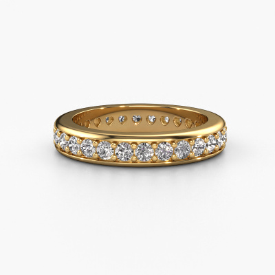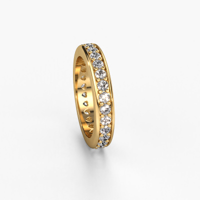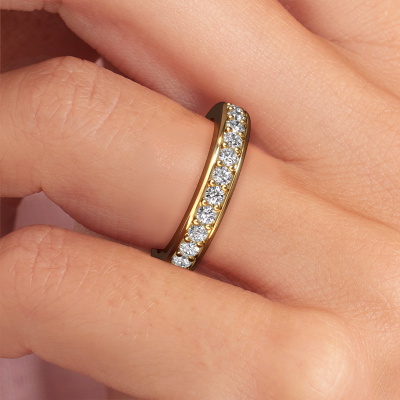 This is our Nienke ring. This specific type is called an eternity ring and it is set with a continuous line of identically cut gemstones. The ring is made in 14 Carat gold and is set with small lab grown diamonds, 1.26 crt. The amazing lab grown diamonds are identical in size and are set in the ring band. Our lab grown diamonds are selected with great care so they are identical, which gives the best result. In order to get the best result, our artisans position all lab grown diamonds by hand with the utmost care. Our Goldsmiths have one ambition, which is creating the perfect ring. That is why we love what we do. In the end you get a stunning modern gold stackable ring with a row of lab grown diamonds which seem to have no beginning nor end. The perfect symbol of your undying love for her! How special is that!After receiving your order, our goldsmiths will start the creative process of making your Nienke ring. We don't keep stock. This is advantageous because these costs will not be passed on to you. Therefore, we can offer jewelry at exceptionally low prices.Our team of talented, passionate designers add new ring designs to our online collection daily. Our objective in doing so, is to be able to offer you a wide variety of jewels. Please feel free to request a quote if you have specific wishes for your ring. We guarantee to make you an offer you can't refuse.To make it easier for you, we offer a 30 day return policy. Check our terms and conditions.