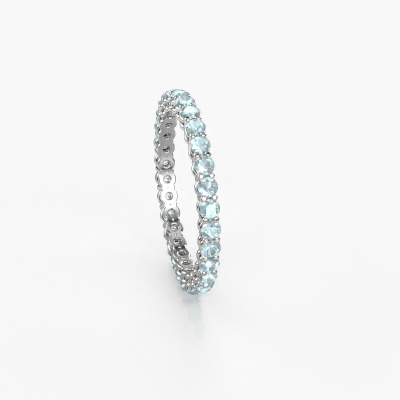 This is our Michelle full 2.0 ring. This specific type is called an eternity ring and it is set with a continuous line of identically cut gemstones. The ring is made in platinum and is set with small aquamarine, 2 mm. The amazing aquamarine are identical in size and are set in the ring band. Our aquamarine are selected with great care so they are identical, which gives the best result. In order to get the best result, our artisans position all aquamarine by hand with the utmost care. Our Goldsmiths have one ambition, which is creating the perfect ring. That is why we love what we do. In the end you get a stunning classic platinum stackable ring with a row of aquamarine which seem to have no beginning nor end. The perfect symbol of your undying love for her! How special is that!By using a combination of the latest modern techniques, combined with ancient crafting, we can make all our rings in our own studio. Each jewel is made to order. This is advantageous because we can offer you a price you won't find anywhere else.New jewelry designs are added to our online collection daily. Our team of passionate designers strive to create extraordinary and diverse designs. Have you seen a ring you like? Please feel free to contact us. Based on a good price/ quality ratio, we will make you an offer you can't refuse!To make it easier for you, we offer a 30 day return policy. Check our terms and conditions.