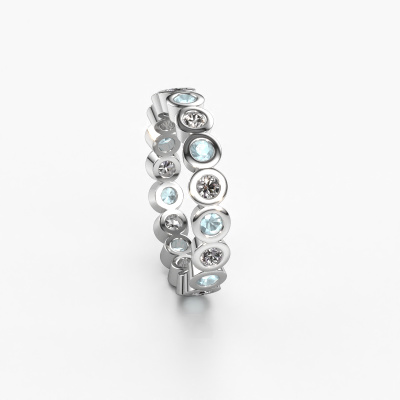 This is our Edwina 2 ring. This specific type is called an eternity ring and it is set with a continuous line of identically cut gemstones. The ring is made in 14 Carat white gold and is set with small cz-stones, 2.5 mm. The amazing cz-stones are identical in size and are set in the ring band. Our cz-stones are selected with great care so they are identical, which gives the best result. In order to get the best result, our artisans position all cz-stones by hand with the utmost care. Our Goldsmiths have one ambition, which is creating the perfect ring. That is why we love what we do. In the end you get a stunning trendy white gold stackable ring with a row of cz-stones which seem to have no beginning nor end. The perfect symbol of your undying love for her! How special is that!By using our modern techniques, we can design and customize the finest quality jewels with the utmost care for you. Our rings are always priced 30 percent lower than other jewelers. We make rings to order, so we don't have to maintain a large stock. If you have a certain budget, we are more than happy to advice you accordingly.Our talented designers add new designs to our online collection daily. Together they create a diverse collection of the finest jewelry. If you prefer to make a ring according your own design, please feel free to request a quote. We will make you an amazing offer, based on quality and price.To make it easier for you, we offer a 30 day return policy. Check our terms and conditions.