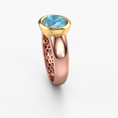 Are you looking for a tasteful ring with an eye-catching single gemstone? How do you like this Evelyne ring? This rose gold Evelyne ring is set with a beautiful 10x8 mm oval blue topaz. The blue topaz is carefully selected by our blue topaz suppliers. Subsequently, these gemstones are then set by our goldsmith according to ancient tradition. The ring will then be polished to perfection creating a unique ring with a stunning blue topaz. Created especially for you. A customized fantasy ring is the perfect gift! New exquisite designs are added daily by our team of passionate goldsmiths. And each design can be customized. Simply customize the precious metals and the color of gemstones which will be used, for example. This makes your design of the fantasy Evelyne ring truly unique!By using a combination of the latest modern techniques, combined with ancient crafting, we can make all our rings in our own studio. Each jewel is made to order. This is advantageous because we can offer you a price you won't find anywhere else.To make it easier for you, we offer a 30 day return policy. Check our terms and conditions.
