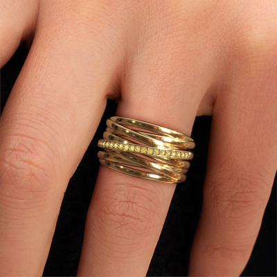 How would you describe your own style? Are you looking for something uniquely different? This twist gold Fien ring is astonishing! Simply customize to your or her own liking. This ring is set with yellow sapphire. These yellow sapphire have been carefully selected because your ring must be adorned with nothing but the most beautiful gemstone. Wouldn't you agree? Our expert goldsmith will create your ring in our own crafting studios, where the yellow sapphire will be set with care. The ring will then be polished to perfection to give it that extra sparkle. It's a perfect ring for a woman of excellent taste!The best part of this twist ring is that you can customize it to your own liking. Your style, your choice, your ring. On top of that, your fantasy gold ring will be made by hand with eco-friendly materials! Please feel free to easily customize the ring, using our online tool.By using a combination of the latest modern techniques, combined with ancient crafting, we can make all our rings in our own studio. Each jewel is made to order. This is advantageous because we can offer you a price you won't find anywhere else.To make it easier for you, we offer a 30 day return policy. Check our terms and conditions.