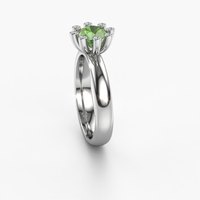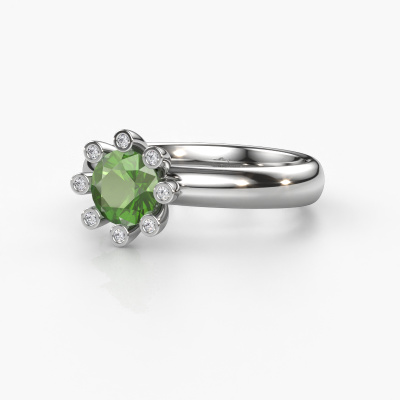 Stacked rings are the perfect addition to your ring collection. They are very popular! This platinum ring with round tourmaline green can be combined with other stacked rings or a ring you currently own. A stacked ring is a perfect reminder of a memorable moment or a loved one. Stack the milestones in your life and let the rings do the talking. This fashionable ring is called Carola 3. It was designed by our own expert goldsmiths and we still make it by hand in our own artisan studio. Simply customize to your liking!As soon as you finished designing your Carola 3 ring with our online tool, our goldsmiths will start their creative process of making your ring. This will be done with passion and care, according ancient crafting. On top of that, our jewels are made of eco-friendly materials. Simply customize online with our online tool, if you want any changes made. If you want specific changes made to your Carola 3 ring, that are unavailable in our online tool, please feel free to contact our expert designers.Because we design and deliver our own rings, we can offer you a ring at a price you won't find anywhere else. A ring is made to order, which helps prevent excess supplies, so we can make you a great price offer. We understand it feels risky, buying your ring online, but we will gladly assist in the designing process, taking your budget into consideration.To make it easier for you, we offer a 30 day return policy. Check our terms and conditions.