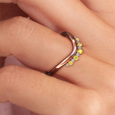 Stacked rings are the perfect addition to your ring collection. They are very popular! This 14 Carat rose gold stackable ring with round yellow sapphire can be combined with other stacked rings or a ring you currently own. A stacked ring is a perfect reminder of a memorable moment or a loved one. Stack the milestones in your life and let the rings do the talking. This fine stackable ring is called Lyla B. It was designed by our own expert goldsmiths and we still make it by hand in our own artisan studio. Simply customize to your liking!Customize your own fineLyla B stackable ring, which will then be created by our goldsmiths with great passion. Do you prefer a different option than is shown here in the rose gold Lyla B stackable ring? Then our online tools offers various options. Feel free to ask us for help if you are unable to succeed. We are happy to answer your questions!After receiving your order, our goldsmiths will passionately start the creative process of making your ring in our own studio. Because we don't have a big stockpile, these costs will not be passed on to you. Our pricing is proof of that! We offer top quality jewels at lowest price, guaranteed.To make it easier for you, we offer a 30 day return policy. Check our terms and conditions.