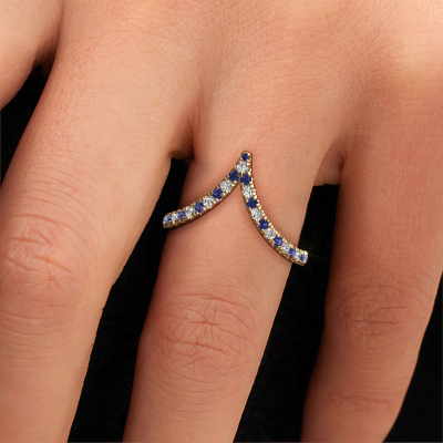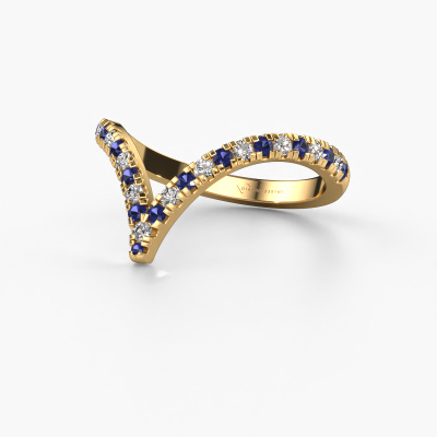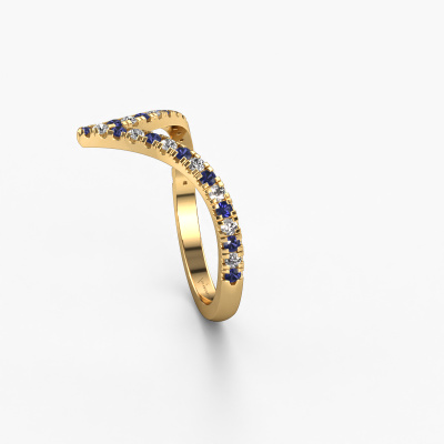 This ring is called Mirtha. It is made of 14 Carat gold and is set with 1.5 mm sapphire. Are you looking for a unique gold ring with a modern appearance? Then this is the ring for you. Simply customize to your or her liking. Perfect for a modern, contemporary woman! This contemporary ring is adorned with stunning sapphire. It was carefully selected because your ring must be adorned with nothing but the most beautiful gemstones. Our expert goldsmith will create your ring in our own studio, where the sapphire will be set with great care. The ring will then be polished to perfection to create a beautiful ring. After receiving your order, our goldsmiths will passionately start the creative process of making your ring in our own studio. Because we don't have a big stockpile, these costs will not be passed on to you. Our pricing is proof of that! We offer top quality jewels at lowest price, guaranteed.New jewelry designs are added to our online collection daily. Our team of passionate designers strive to create extraordinary and diverse designs. Have you seen a ring you like? Please feel free to contact us. Based on a good price/ quality ratio, we will make you an offer you can't refuse!To make it easier for you, we offer a 30 day return policy. Check our terms and conditions.