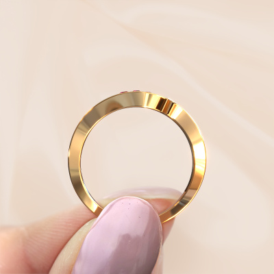 This ring is called Amelie. It is made of 14 Carat gold and is set with 1.7 mm ruby. Are you looking for a unique gold ring with a modern appearance? Then this is the ring for you. Simply customize to your or her liking. Perfect for a modern, contemporary woman! This elegant ring is adorned with stunning ruby. It was carefully selected because your ring must be adorned with nothing but the most beautiful gemstones. Our expert goldsmith will create your ring in our own studio, where the ruby will be set with great care. The ring will then be polished to perfection to create a beautiful ring. Because we design and deliver our own rings, we can offer you a ring at a price you won't find anywhere else. A ring is made to order, which helps prevent excess supplies, so we can make you a great price offer. We understand it feels risky, buying your ring online, but we will gladly assist in the designing process, taking your budget into consideration.New jewelry designs are added to our online collection daily. Our team of passionate designers strive to create extraordinary and diverse designs. Have you seen a ring you like? Please feel free to contact us. Based on a good price/ quality ratio, we will make you an offer you can't refuse!To make it easier for you, we offer a 30 day return policy. Check our terms and conditions.