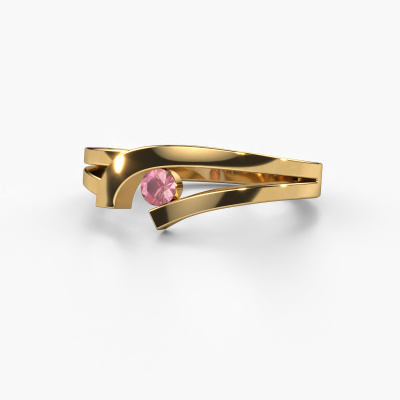 This ring is called Yentl. It is made of 14 Carat gold and is set with 3 mm tourmaline pink. Are you looking for a unique gold ring with a modern appearance? Then this is the ring for you. Simply customize to your or her liking. Perfect for a modern, contemporary woman! This fantasy ring is adorned with stunning tourmaline pink. It was carefully selected because your ring must be adorned with nothing but the most beautiful gemstones. Our expert goldsmith will create your ring in our own studio, where the tourmaline pink will be set with great care. The ring will then be polished to perfection to create a beautiful ring. By using our modern techniques, we can design and customize the finest quality jewels with the utmost care for you. Our rings are always priced 30 percent lower than other jewelers. We make rings to order, so we don't have to maintain a large stock. If you have a certain budget, we are more than happy to advice you accordingly.Our team of talented, passionate designers add new ring designs to our online collection daily. Our objective in doing so, is to be able to offer you a wide variety of jewels. Please feel free to request a quote if you have specific wishes for your ring. We guarantee to make you an offer you can't refuse.To make it easier for you, we offer a 30 day return policy. Check our terms and conditions.