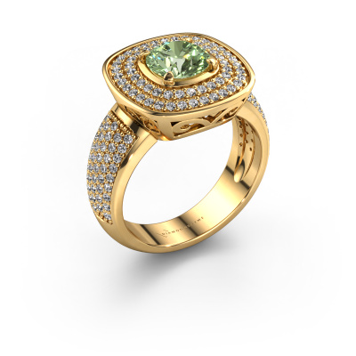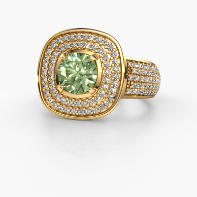 This exclusive gold Eliana ring is a true work of art! This ring is made of 14 Carat gold and is set with 6 mm round green lab grown diamond. The smallest ornaments are crafted by our goldsmith with a lot of patience and great passion. In order to create this ring with great precision, this craft requires a keen eye and a skillful hand. A challenge which ignites a fire in our expert goldsmiths. The exquisite green lab grown diamondd are set in a way that their unique qualities are strengthened. This gives the ring an even more glamorous appearance. The ring is unique by itself though, because of the natural birthstones we selected especially for this Eliana ring. And by choosing the precious metal yourself, you create a unique ring. As soon as you finished designing your Eliana ring with our online tool, our goldsmiths will start their creative process of making your ring. This will be done with passion and care, according ancient crafting. On top of that, our jewels are made of eco-friendly materials. Simply customize online with our online tool, if you want any changes made. If you want specific changes made to your Eliana ring, that are unavailable in our online tool, please feel free to contact our expert designers.By using a combination of the latest modern techniques, combined with ancient crafting, we can make all our rings in our own studio. Each jewel is made to order. This is advantageous because we can offer you a price you won't find anywhere else.To make it easier for you, we offer a 30 day return policy. Check our terms and conditions.