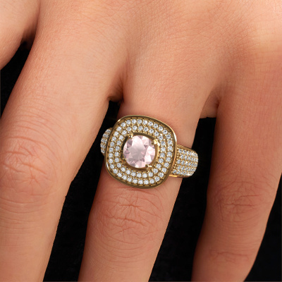 This exclusive gold Eliana ring is a true work of art! This ring is made of 14 Carat gold and is set with 6 mm round morganite champagne. The smallest ornaments are crafted by our goldsmith with a lot of patience and great passion. In order to create this ring with great precision, this craft requires a keen eye and a skillful hand. A challenge which ignites a fire in our expert goldsmiths. The exquisite morganite champagne are set in a way that their unique qualities are strengthened. This gives the ring an even more glamorous appearance. The ring is unique by itself though, because of the natural birthstones we selected especially for this Eliana ring. And by choosing the precious metal yourself, you create a unique ring. As soon as you finished designing your Eliana ring with our online tool, our goldsmiths will start their creative process of making your ring. This will be done with passion and care, according ancient crafting. On top of that, our jewels are made of eco-friendly materials. Simply customize online with our online tool, if you want any changes made. If you want specific changes made to your Eliana ring, that are unavailable in our online tool, please feel free to contact our expert designers.By using a combination of the latest modern techniques, combined with ancient crafting, we can make all our rings in our own studio. Each jewel is made to order. This is advantageous because we can offer you a price you won't find anywhere else.To make it easier for you, we offer a 30 day return policy. Check our terms and conditions.